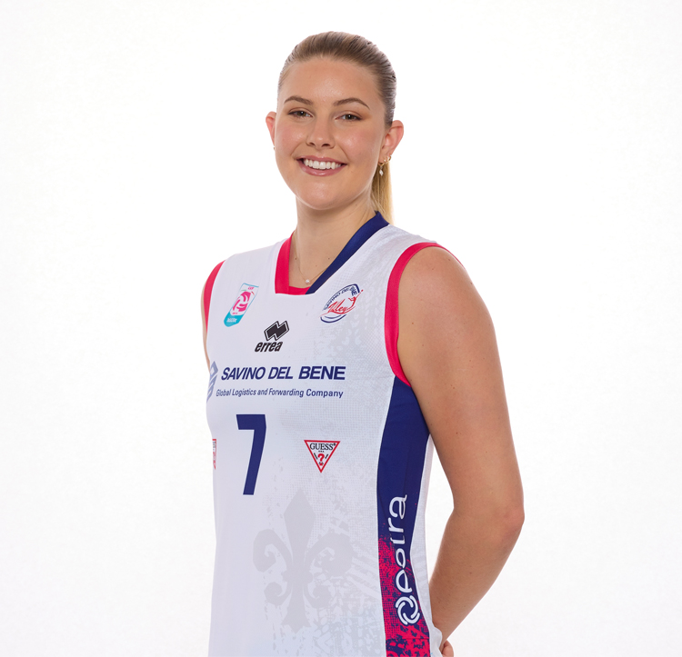 Savino Del Bene Volley Maglia gioco ufficiale, bianca gara away, indossata dalla giocatrice durante la stagione 2025/2026.